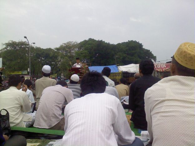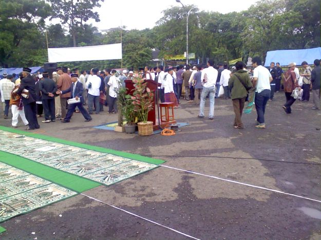 Gema takbir pagi ini terus berkumandang di mana-mana menandai telah datangnya hari raya Idul Adha 10 Dzulhijah 1431 H. Di Indonesia sendiri terjadi perbedaan mengenai penentuan awal bulan Dzulhijah. Pemerintah menetapkan Idul Adha jatuh pada hari Rabu besok tanggal 17 November 2010. Sementara, sebagian yang lain ada yang sudah merayakannya pada hari ini, Selasa 16 November 2010 sama seperti dengan yang ditetapkan di Arab Saudi dan negara-negara Islam lainnya. Di Bandung sendiri ternyata cukup banyak umat muslim yang mengikuti sholat Idul Adha hari selasa ini, seperti yang saya ikuti di lapangan monumen perjuangan dekat Universitas Padjajaran Dipati Ukur.