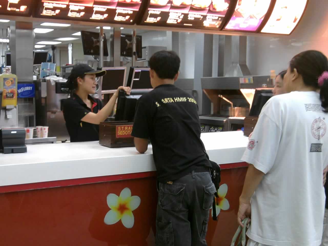 Saat mengantri memesan makanan, tanpa sengaja aku melihat wajah salah seorang pramusajinya yang melayani pengunjung yang mengantri. “Wajahnya kok mirip banget ya sama teman SMA-ku. Kebetulan dia memang lagi kuliah di Universitas Udayana.” pikirku ketika itu. Aku nggak percaya. makanya, aku abaikan saat itu. Apalagi aku bukan berada di antriannya. Nggak enak banget kalau menegur dia saat lagi sibuk-sibuknya.