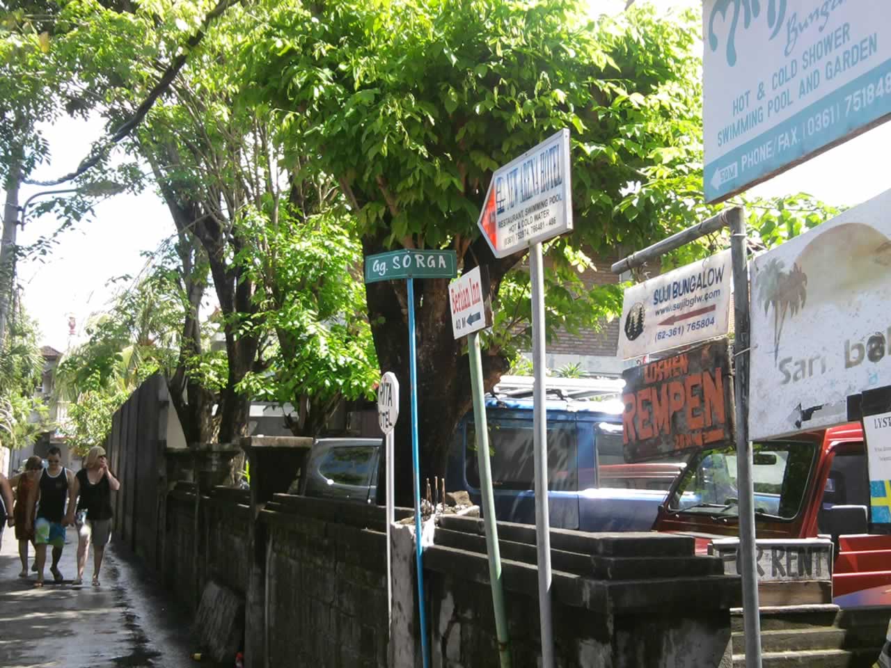 Kami pun mencoba mencari losmen-losmen murah di sepanjang jalan Poppies seperti yang disarankan sopir taksi tadi. Akhirnya kami menemukan rumah yang menawarkan kamar-kamar di jalan Poppies II gang Sorga. Nama penginapannya “Ayu Beach Inn”. Kami meminta satu kamar untuk empat orang kepada pemilik rumah. Oleh beliau langsung ditawarkan Rp200.000. Sebenarnya jika dibandingkan dengan beberapa penginapan murah di Bandung harga itu termasuk mahal jika melihat fasilitas ditawarkan yang juga sama. Fasilitas itu antara lain, tempat tidur untuk dua orang 2 buah, tempat tidur untuk satu orang 1 buah, 1 lemari pakaian dua bilik, kipas angin, cermin, dan kamar mandi. Tapi harga segitu bisa jadi memang termasuk murah di Bali setelah kami mendengar ada dua orang yang ingin memesan kamar di sana kemudian dibandrol Rp160.000 oleh pemiliknya.