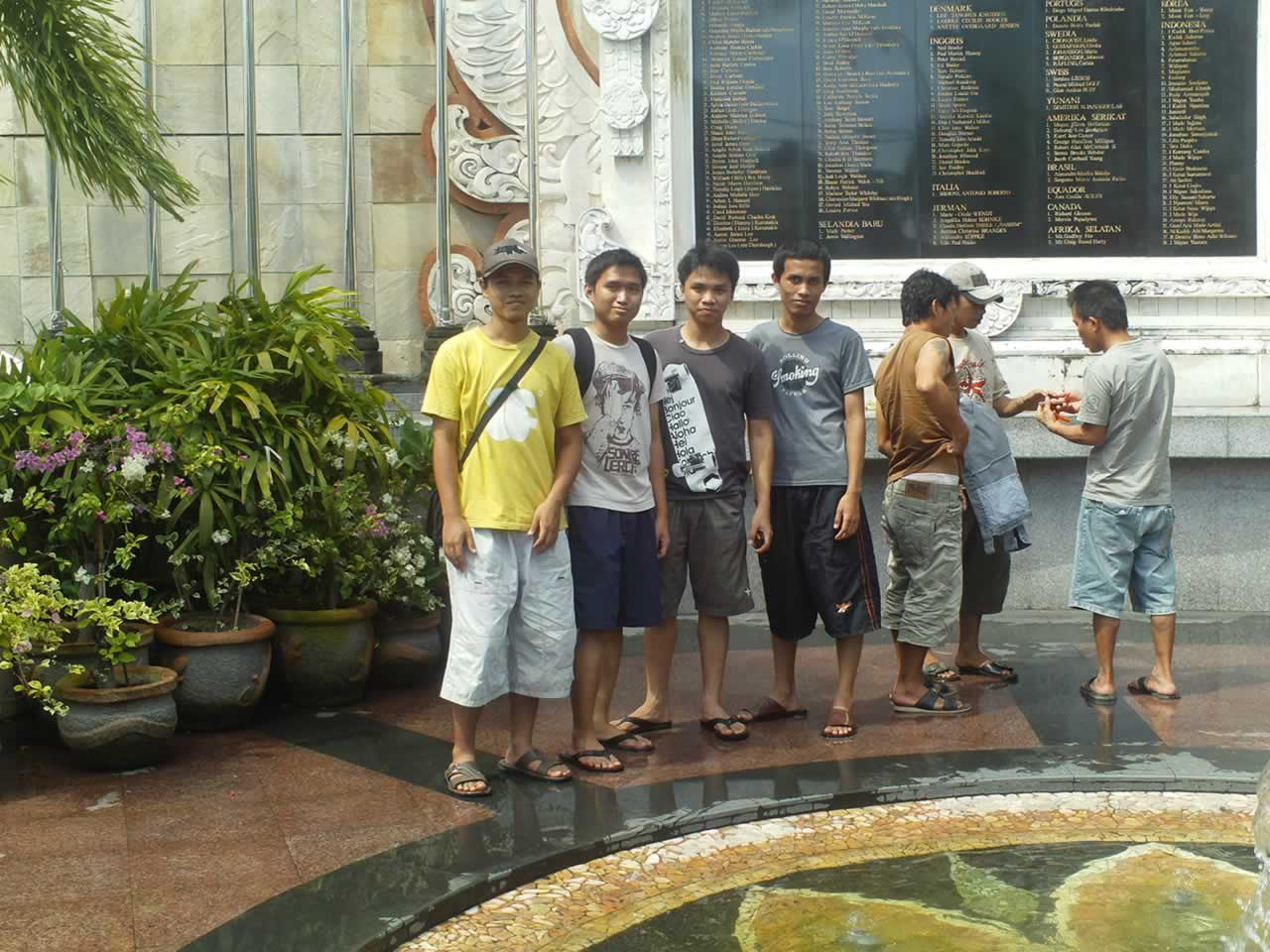 Nyari rental mobil sudah. Sekarang saatnya menikmati jalanan di Legian. Kami sempat mampir berkunjung di ground zero bekas ledakan bom bali pada 12 Oktober 2010, 8 tahun yang lalu. Di sana terpampang nama-nama korban tewas pada tragedi itu. Di sana kami berfoto sebentar mengabadikan momen di mana kami berada. Selain kami ada banyak turis yang berfoto-foto di area ground zero itu.