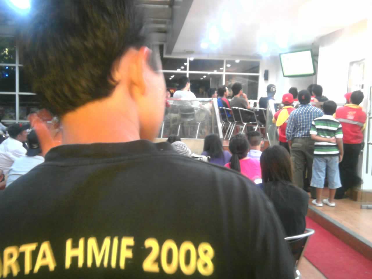 Sehabis memesan makanan, aku kembali lagi ke kursi di mana anak-anak berada tadi. kami menyaksikan pertandingan babak kedua timnas Indonesia melawan Malaysia itu sambil menikmati makanan. Sayang sekali malam itu Timnas Indonesia kalah 3-0. Raut muka dan teriakan ekspresi kekecewaan pengunjung saat itu sangat jelas terlihat malam itu.