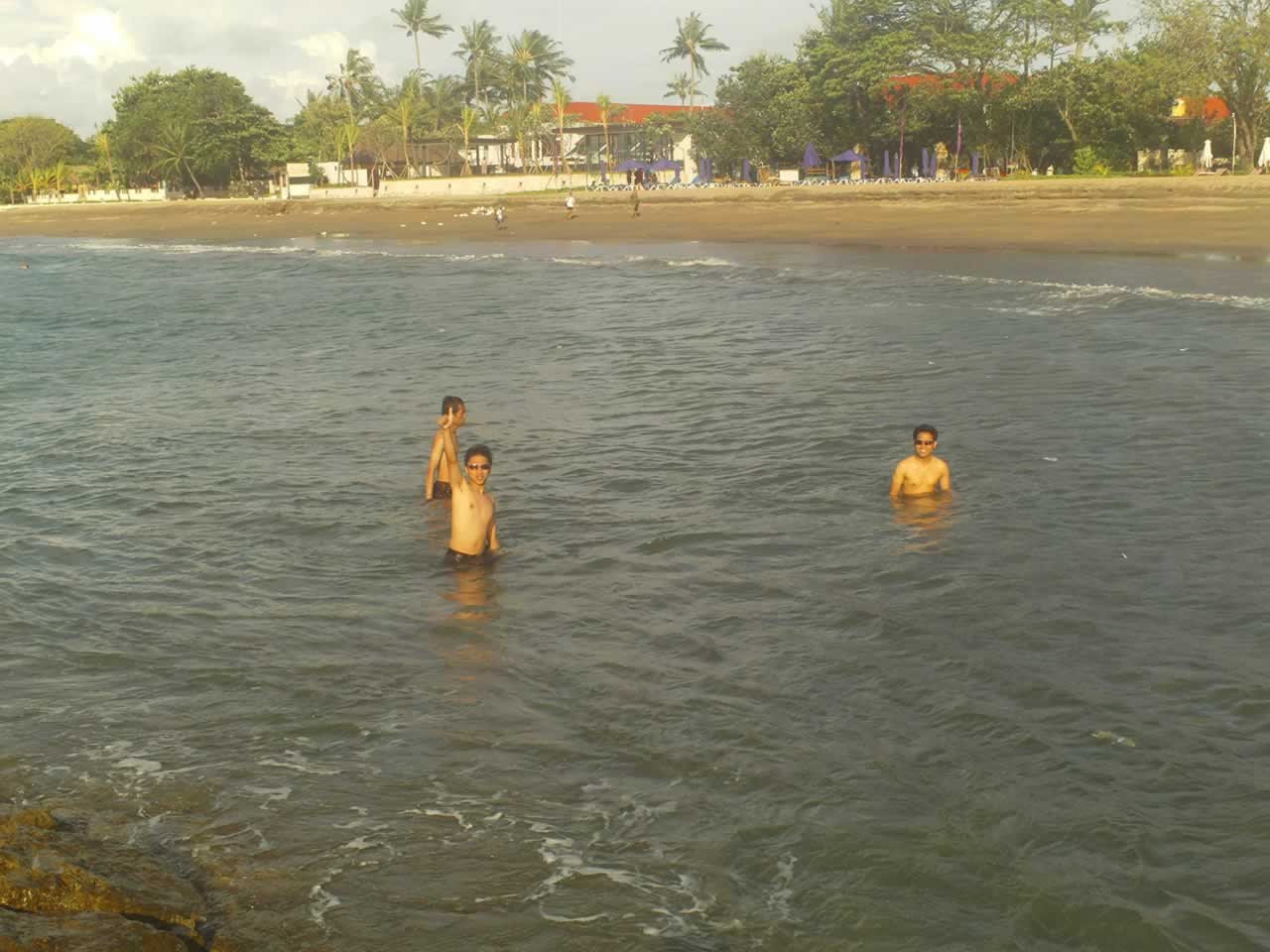 Perjalanan dari Ubung ke Legian memakan waktu sekitar sejam. Sampai di pantai Legian kita nggak tahu harus ke mana lagi. Kami berjalan terus menyusuri pantai Legian dengan memanggul tas-tas yang berat. Sambil jalan, kami berdiskusi hendak ke mana setelah ini. Akhirnya kami sepakat, akan cari penginapan saja.