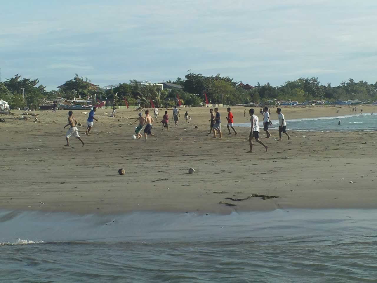 Sore itu, suasana pantai itu cukup panas meskipun hujan baru saja mengguyur pantai. Di sana tampak orang-orang bule sedang berjemur. Selain itu, banyak juga bule-bule dan pemuda lokal yang sedang surfing di laut. Pemuda-pemuda lokal juga tampak bermain sepakbola di pinggir pantai bersama anak-anak bule yang ikutan nimbrung. Di pantai itu juga kami melihat banyak rombongan wisatawan dari pulau Jawa, dilihat dari bahasa yang mereka ucapkan. Kami sendiri terus berjalan menyusuri pantai ke arah selatan sambil sesekali bermain air laut dan berenang.