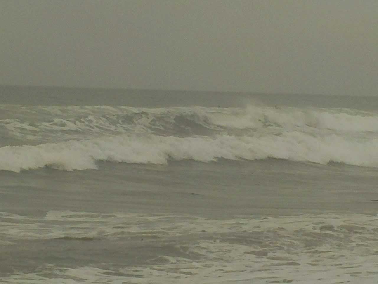 Tiba-tiba langit mendung. Hujan rintik-rintik mulai mengguyur. Lama-kelamaan hujan menjadi semakin deras. Akhirnya kami langsung terbangun dan menyingkir dari pantai. Orang-orang di tepi pantai lainnya pun juga demikian. Mereka berlarian mencari tempat untuk berteduh. Hanya para peselancar itu yang sepertinya masih menikmati permainannya.