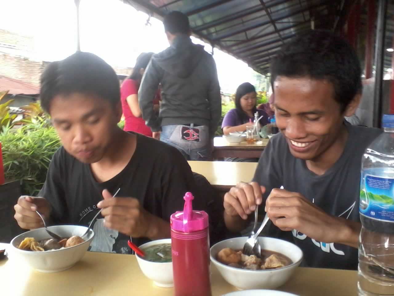 Kami berempat mampir makan dulu bakso Presiden yang ada di belakang gedung eks Mitra 2 itu. Sudah lama aku nggak makan bakso Presiden ini. Mumpung bareng teman-teman dari luar pulau Jawa ini, mereka aku ajaklah ke tempat ini makan bakso. Sekalian memperkenalkan kepada mereka bahwa seperti ini lho bakso Malang, beda dengan mie baso atau mie kocok di Bandung :P. Sambil ditemani musik yang diputar di tempat makan itu dan pemandangan kereta yang lewat di samping kami menikmati bakso siang itu. (No Iklan ya… :D)