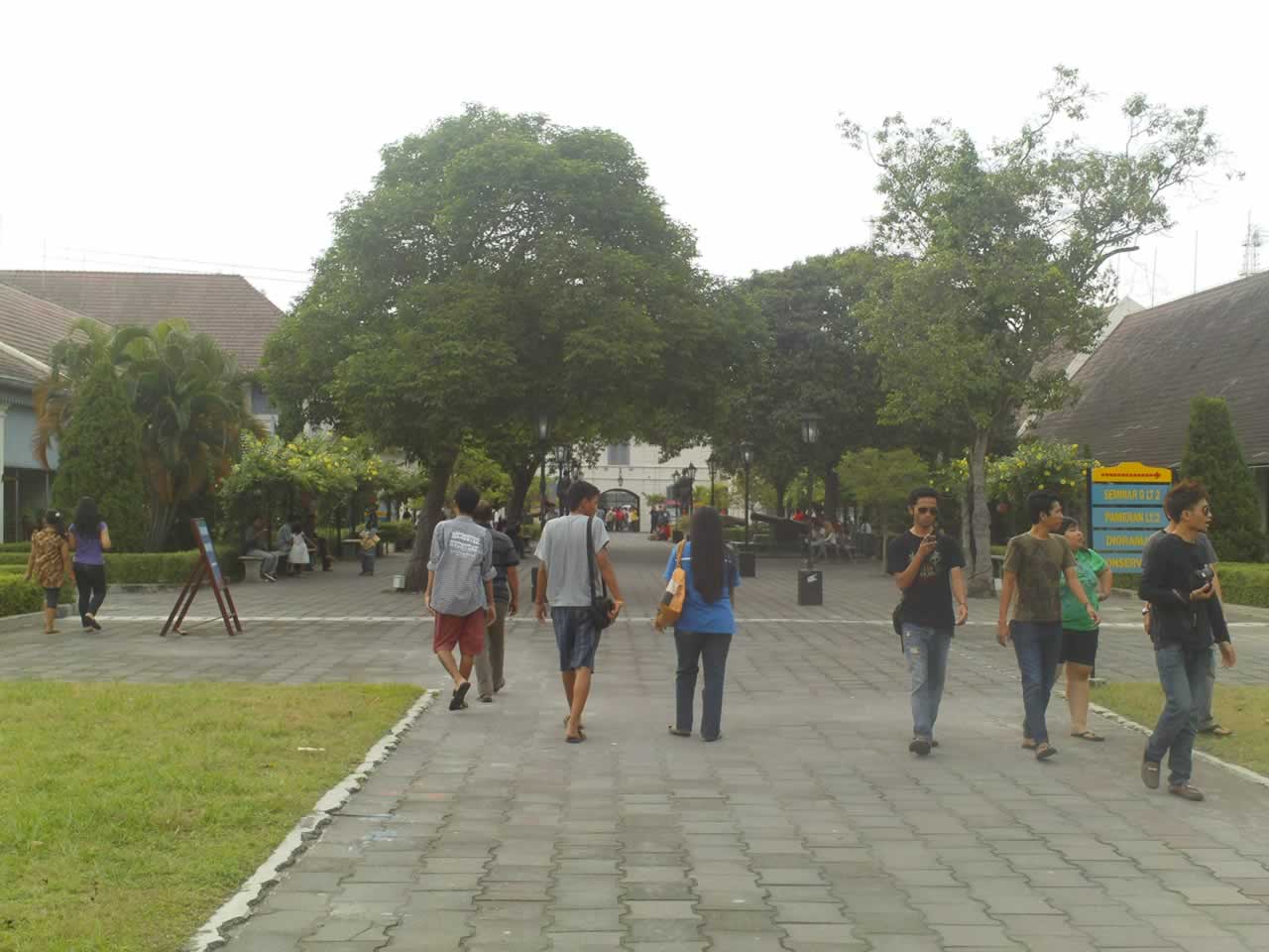 Selesai melihat diorama-diorama dan berkeliling kompleks vredeburg, kami menyudahi diri dan meninggalkan vredeburg menuju keraton Jogjakarta. Sayangnya, kami datang terlalu sore, sehingga pintu masuk untuk wisatawan sudah ditutup. Akhirnya kami foto-foto saja dari belakang (atau depan?) keraton yang berbatasan dengan alun-alun Jogjakarta itu.