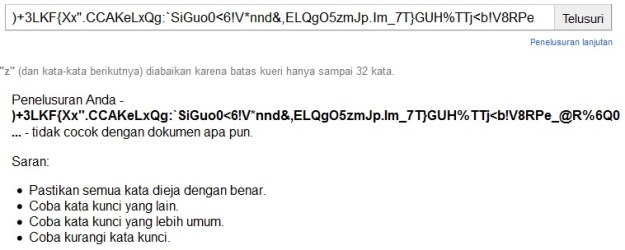 Dengan input sepanjang 100 karakter ternyata Google masih sanggup memprosesnya dengan tetap melakukan pencarian ke dalam koleksi dokumen mereka.