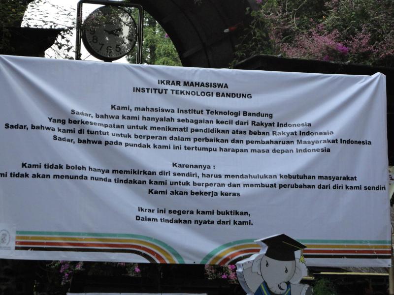 Eitts, ada yang kelupaan. Sebelum performance tiap himpunan, ada pembacaan “ikrar wisudawan” yang dipimpin oleh seorang perwakilan wisudawan/ti. Bagian pembacaan “ikrar wisudawan” ini adalah hal baru selama tradisi arak-arakan berjalan, setidaknya selama 4 tahun aku berada di kampus ini.