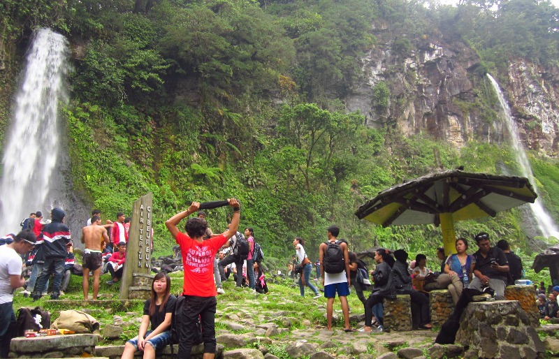 Ketika itu kawasan wisata air terjun Cibeureum ini saat itu tengah ramai dikunjungi oleh para wisatawan. Maklum, hari Minggu. Tapi, kebanyakan sih pengunjungnya adalah muda-mudi yang tengah pacaran di sana.
