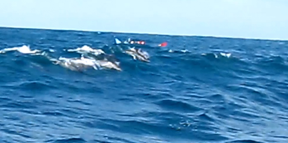 Yah, untuk sekedar melihat lumba-lumba ternyata dibutuhkan perjuangan yang lumayan. Terik matahari di tengah lautan juga lumayan membakar kulit.