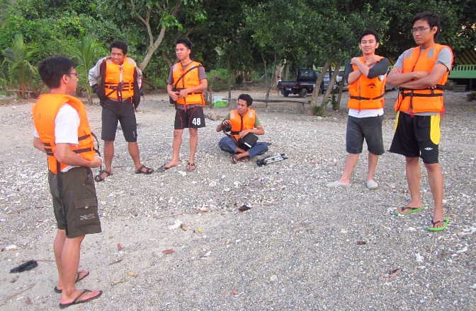 Selepas agenda pencarian lumba-lumba berakhir, kami pun berlayar kembali ke arah Teluk Kiluan. Namun, sebelum itu kami mampir terlebih dahulu di pulau Kelapa yang berada di dekat Teluk Kiluan. Yang bisa dilakukan di sana ya cuma berenang, bermain air atau pasir pantai, tracking menjelajahi pulau, atau snorkeling.