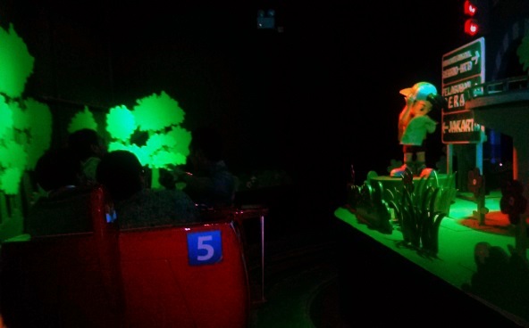 Setelah itu, kami masuk ke wahana Si Bolang-Bocah Petualang. Wahana Si Bolang ini begitu kental terasa Indomie-nya, hehe. Bagaimana tidak, di mana-mana ada properti bertuliskan Indomie. Bahkan, ketika kami berkeliling menggunakan kereta menjelajahi “Indonesia” yang menampilkan ragam rumah adat, pakaian adat, dan budaya masing-masing daerah, properti Indomie itu masih mendominasi. Hmm… sepertinya pepatah “di mana pun daerahnya, kulinernya tetap Indomie” cocok menggambarkan “petualangan” Bolang kami, hehe.