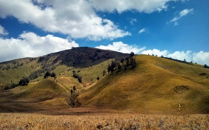 Dari Bromo kamo melanjutkan off road lagi ke Bukit Teletubbies, salah satu place of interest yang terkenal di objek wisata Taman Nasional Bromo Tengger Semeru ini. Tiga kali aku berkunjung ke sini, tapi sayangnya belum pernah sampai mendaki bukit itu. Paling banter cuma mencapai kaki bukitnya saja. Mau gimana lagi, waktu juga terbatas.