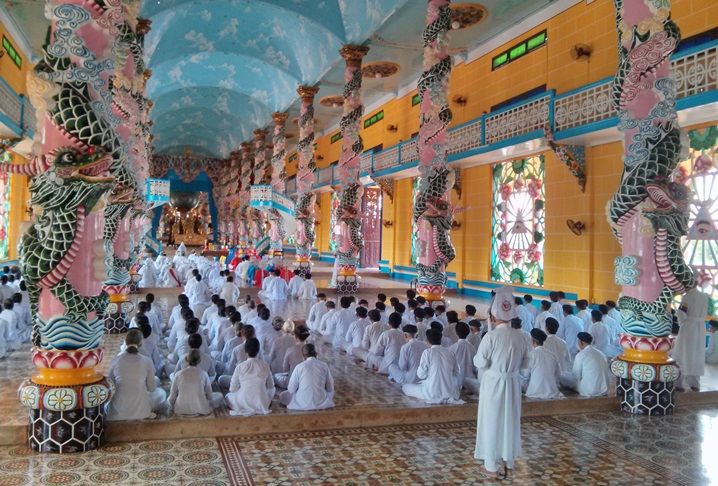 Apa itu Cao Dai? Dari yang kupahami dari penjelasan sang pemandu, Cao Dai atau Caodaism ini merupakan agama “baru” yang menyatukan agama-agama yang ada di dunia. Hal tersebut terlihat dari praktik ibadah yang mereka lakukan. Salah satunya yakni cara mereka bersujud persis sebagaimana umat muslim bersujud ketika sholat.