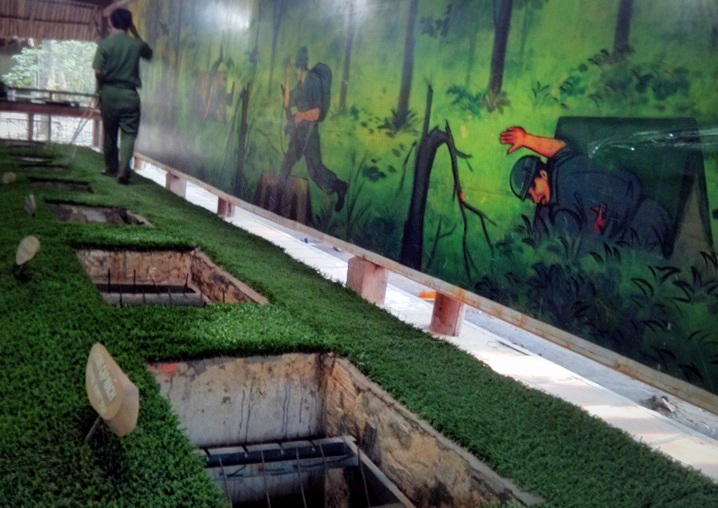 Tak jauh dari jebakan “show room” tersebut, terdapat manekin-manekin (patung) pejuang Vietnam yang sedang menyiapkan senjata atau jebakan. Ada juga bangkai tank yang sudah dilumpuhkan para tentara Vietkong.