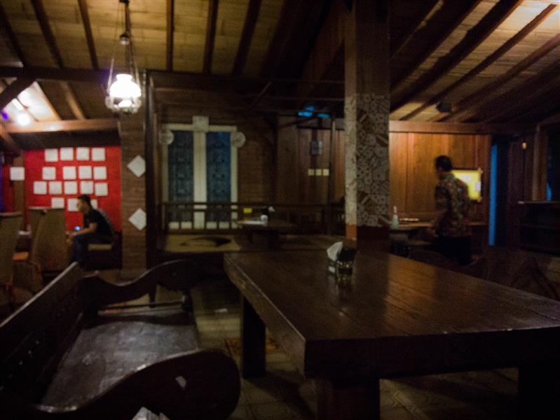 Kriteria menu dan tempat yang nggak biasa, menurut kami dua-duanya terpenuhi di sana. Tempatnya unik. Suasananya cukup tadisional. Bangunannya model tradisional yang pondasi (Btw yang bener pondasi atau fondasi hayo? :D) dan interiornya didominasi oleh kayu. Dari sana kita dapat melihat view gemerlap lampu Kota Bandung (kalau ke sana malam hari tentunya).