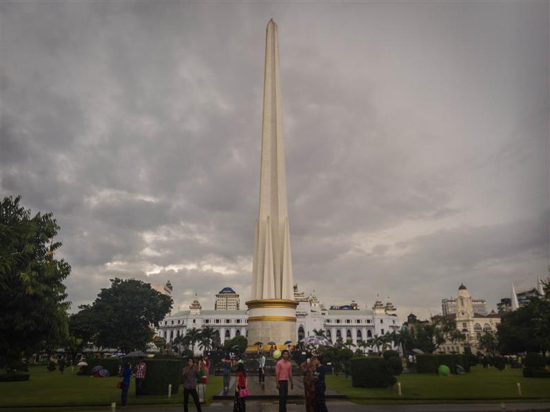 Setelah itu kami berjalan kaki kembali ke arah timur dan sampailah di Maha Bandoola Garden. Walaupun suasana mendung, banyak juga masyarakat Myanmar yang berkunjung ke taman ini. Kalau hari cerah tentu bakal lebih banyak lagi. Apalagi ini hari Minggu.