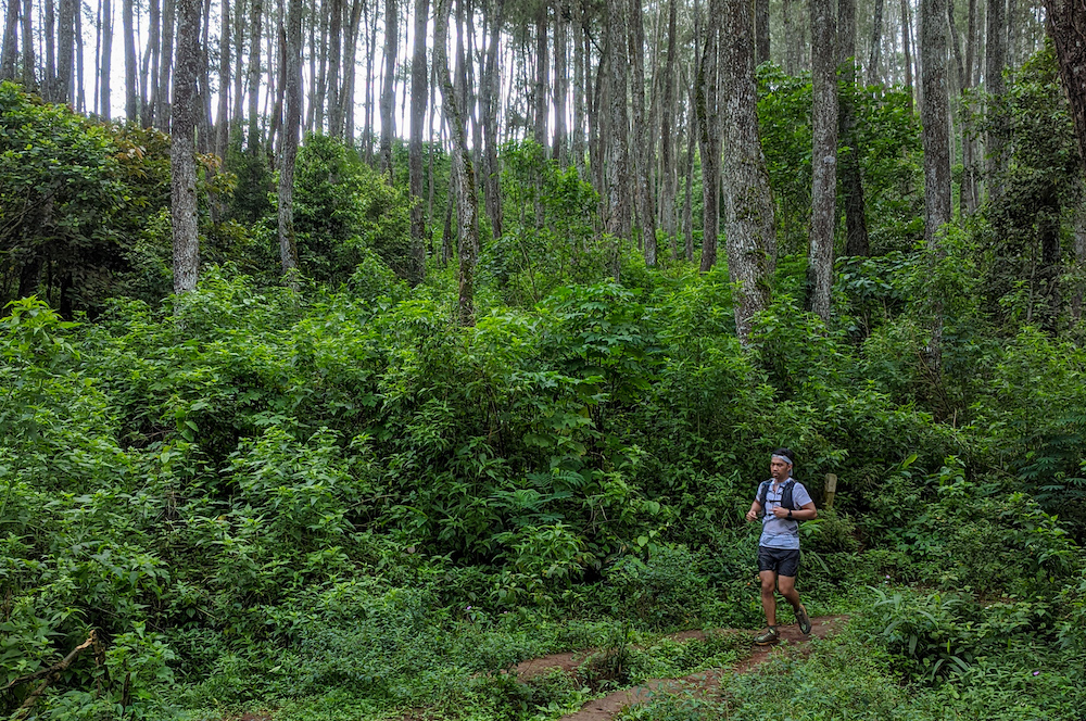 Dalam rute sepanjang kurang lebih 20 km ini kami menemui berbagai macam jenis medan dan pemandangan. Mulai dari lari di pematang ladang, lari di jalan tanah, lari di jalan aspal perkampungan, hingga lari di dalam hutan.