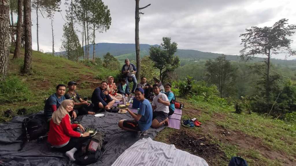 Kami makan bersama di bawah pepohonan pinus beralaskan tikar dan flysheet. Alhamdulillah. Terima kasih teteh. Hehehe.