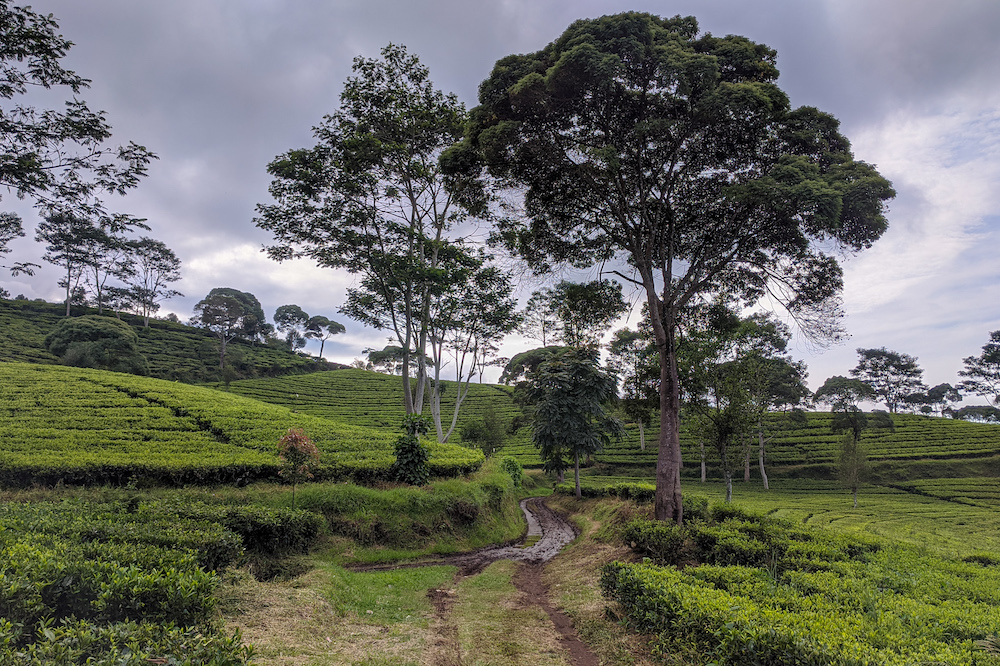 Dari sana kemudian kami mengambil shortcut jalan lurus membelah kebun teh menuju ke bawah sampai akhirnya menemui jalan setapak lagi. Selanjutnya kami tinggal mengikuti jalan setapak itu ke bawah.