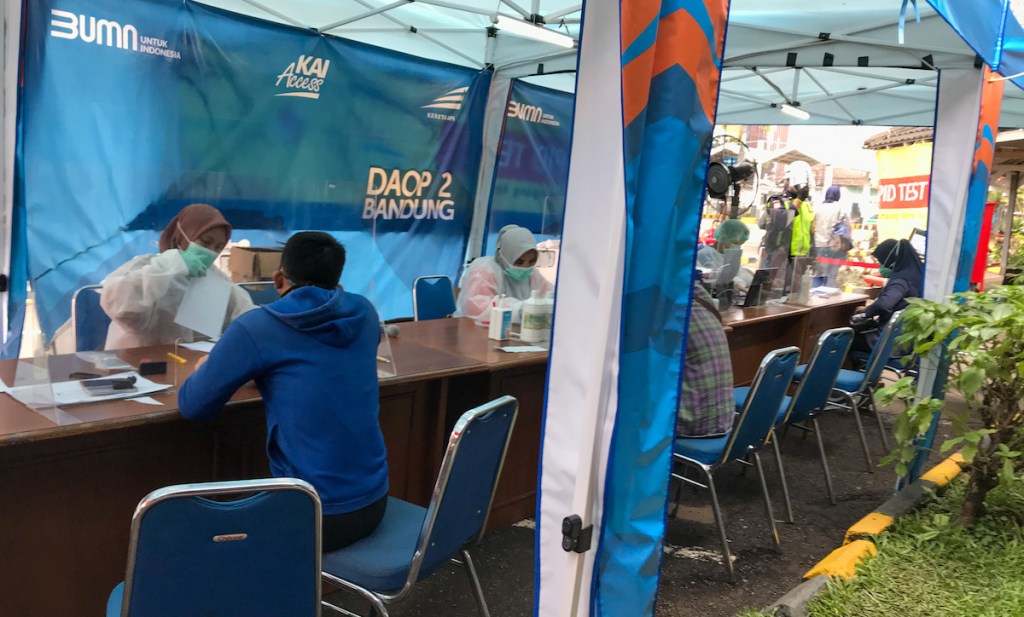 Saya melakukan rapid test di Stasiun Bandung. Kebetulan Stasiun Bandung merupakan salah satu dari beberapa stasiun yang dipilih oleh PT KAI untuk menyediakan fasilitas rapid test. Lokasinya ada di halaman parkir utara Stasiun Bandung.