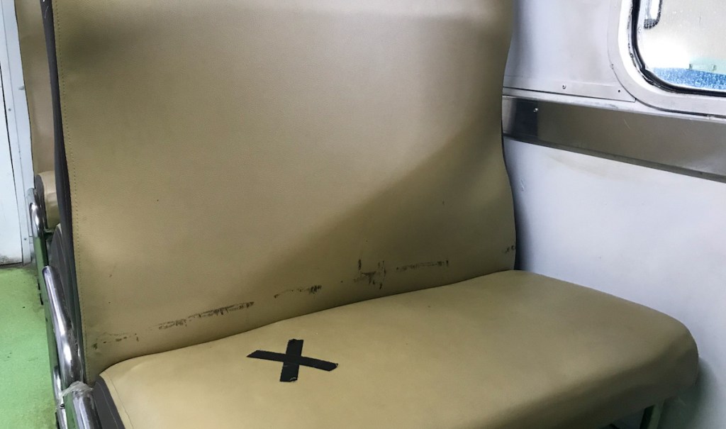 Beda halnya ketika saya naik kereta api lokal dari Surabaya ke Malang (KA Penataran). Beberapa kursi secara jelas sudah ditandai dengan lakban hitam membentuk tanda silang untuk menandakan bahwa kursi tersebut tidak bisa ditempati.