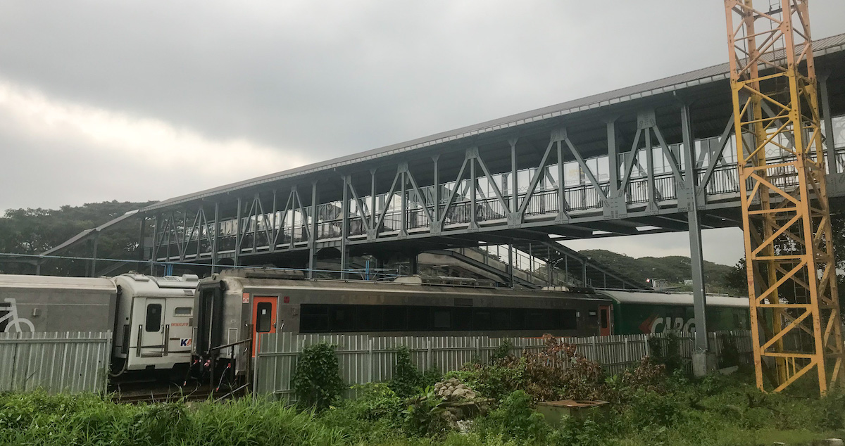 Saya juga sempat menjelajah ke sisi samping bagian selatan gedung stasiun. Di sana rupanya kita bisa melihat langsung pemandangan kereta-kereta api yang tengah stabling. Tampak juga skybridge stasiun untuk menuju ke masing-masing peron.