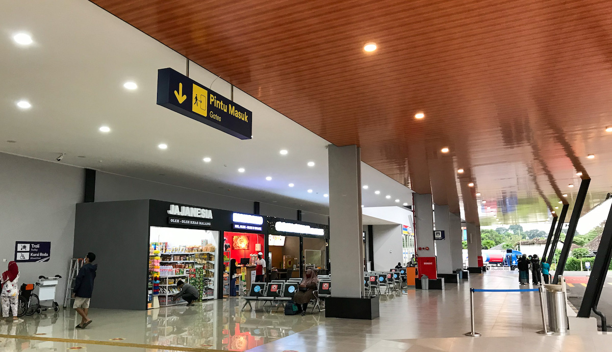 Teras depan stasiun pun juga terasa sangat lega. Areanya cukup luas untuk lalu lalang orang-orang. Terdapat berbagai macam kios juga di sana, di antaranya ada minimarket dan ada juga yang menjual oleh-oleh khas Malang.