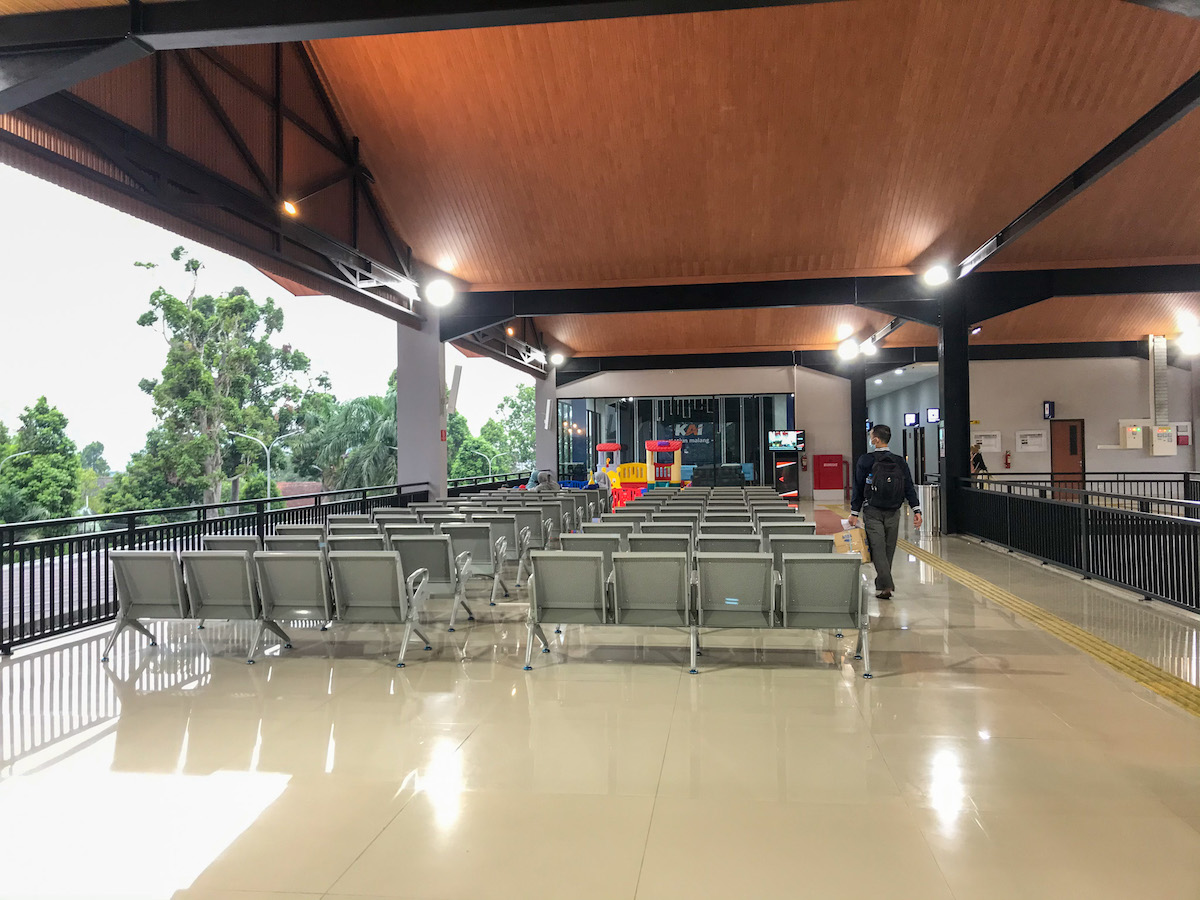 Setelah itu langsung naik eskalator menuju lantai 2. Hall di dalam stasiun juga terasa modern layaknya di bandara. Namun tidak seperti di bandara di mana biasanya terdapat banyak kios makanan dan minuman, di dalam sini tidak ada sama sekali. Hanya terdapat ruang tunggu, ruang kerja pegawai stasiun, toilet, dan (kalau tidak salah) ada mushola juga.