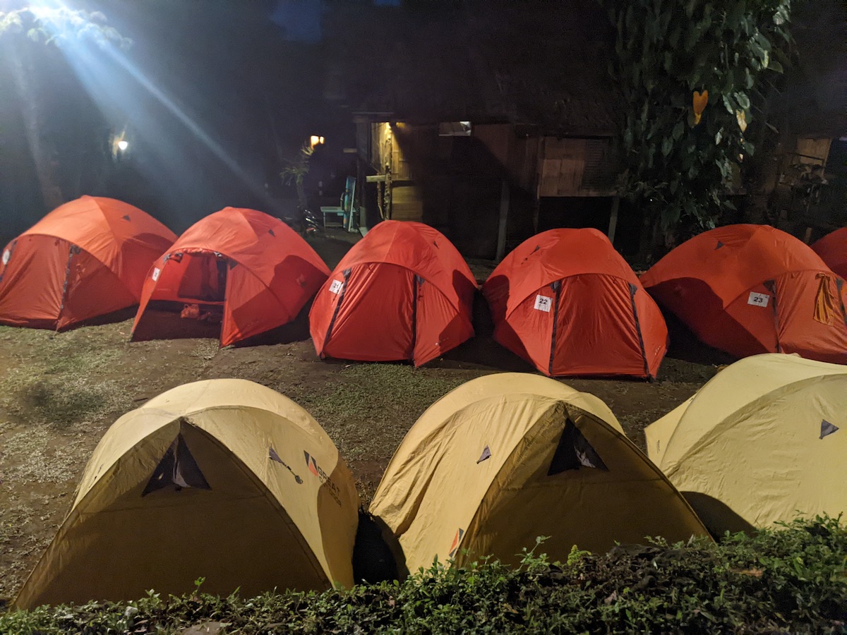 Biayanya Rp300.000 per tenda kapasitas 3-4 orang. Dengan biaya segini sebenarnya bisa dapat penginapan yang lebih nyaman di kawasan sekitaran Prigen atau Tretes. Berhubung saya tidak membawa kendaraan sendiri sementara start akan dilakukan pukul 11 malam, lokasi yang masih berada di kawasan Race Central menjadi pertimbangan utama saya.