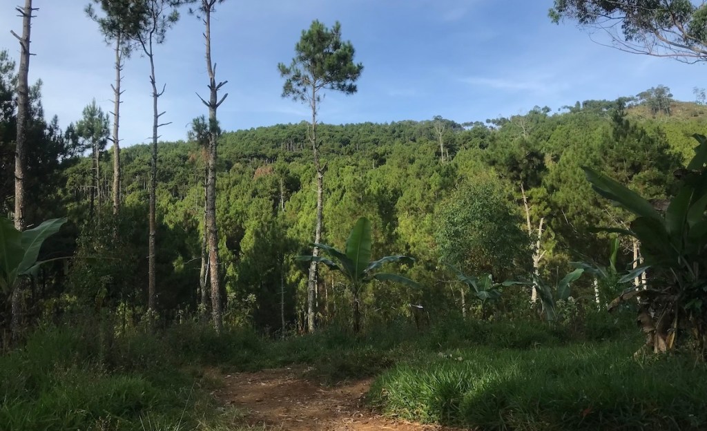 Saya merasa sedikit lebih bersemangat ketika melihat marka KM 31. Alhamdulillah ada progress. Namun, semangat itu mulai pudar ketika saya melihat ada tanjakan hutan pinus yang kemiringannya sangat curam. Ya Allah, ternyata masih harus menanjak lagi. Wkwkwkw. 😂