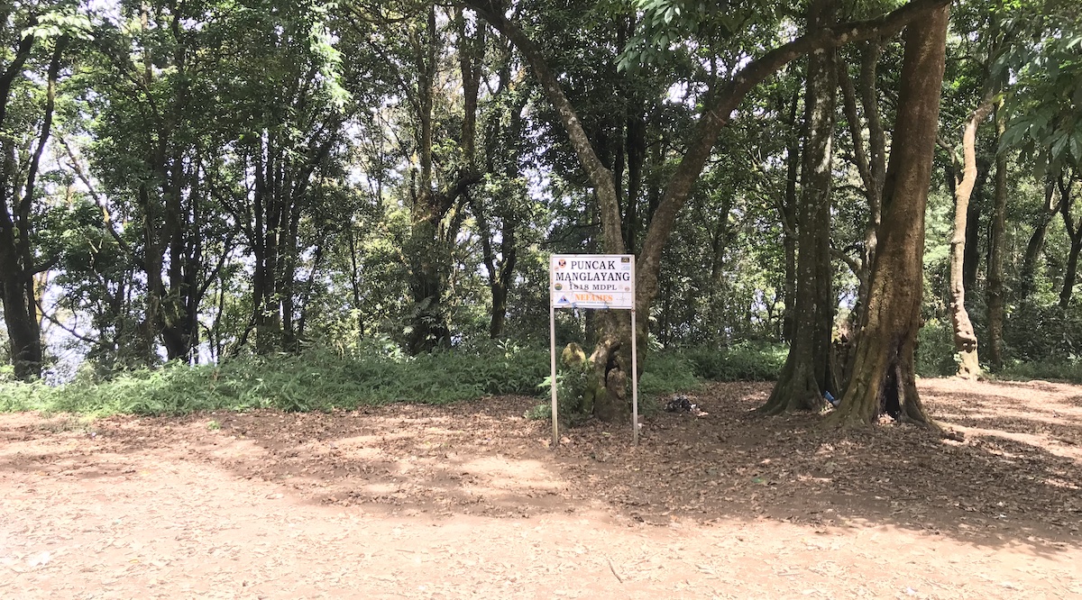 Pada pukul 10.45 akhirnya saya tiba juga di Puncak Gunung Manglayang yang berada di ketinggian 1818 mdpl. Berarti kurang lebih saya telah menghabiskan waktu selama 1 jam 45 menit dari gapura Tanjakan Galau hingga sampai di puncak ini. Jarak yang ditempuh sendiri kurang lebih hampir 2 km. Perbedaan elevasinya sekitar 600 meter.