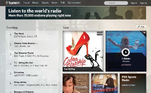 TuneIn ini adalah salah satu aplikasi online yang saya suka untuk mendengarkan radio. Yang saya suka adalah karena pilihan channel-nya sangat banyak dan sepertinya hampir semua negara di dunia dia cover. Kadang-kadang kalau lagi bosan, saya mencoba mendengarkan channel radio dari negara-negara lain. Biasanya sih channel-channel dari negara Malaysia, Italia, Spanyol, UK, US, Jepang, Korea. Eitt… walau beberapa negara itu ada bahasanya yang tidak saya mengerti, tapi saya suka saja mendengarkan keunikan aksen dari masing-masing negara itu.