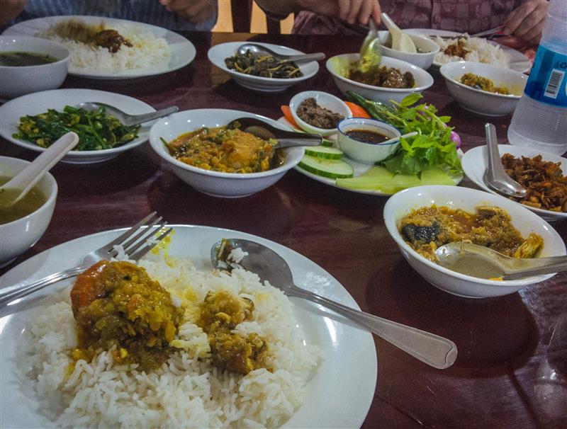 Saya dan bapak mertua senior saya keluar rumah memakai payung. Kami pergi ke restoran di dekat flat untuk menikmati sarapan. Saya memesan menu nasi goreng dengan telor mata sapi. Enak juga ternyata nasi gorengnya. Saya suka bagaimana telor mata sapi itu disajikan. Dia tidak ditaruh di atas nasi goreng langsung, tetapi ditempatkan pada piring terpisah dan disiram kuah kari. Tidak saya sangka kuning telornya yang masih setengah matang bercampur dengan kuah kari ternyata memberikan rasa yang enak yang belum pernah saya rasakan sebelumnya.