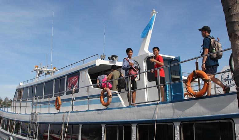 Btw, kapal yang kami naiki cukup bagus. Terdiri dari dua tingkat. Di dalamnya full AC.