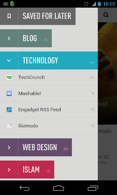 Apabila ingin membuat menu aplikasi yang ‘tidak biasa’, seperti Facebook atau Uber Social dengan menu drawer-nya, sudah ada library yang tersedia untuk itu yang bisa kita manfaatkan, yaitu karya Simon Vig Therkildsen yang bisa diunduh di sini. Begitu pula fitur “pull to refresh” untuk memperbaharui konten, juga telah tersedia library-nya, salah satunya adalah karya Chris Banes yang bisa diunduh di sini.