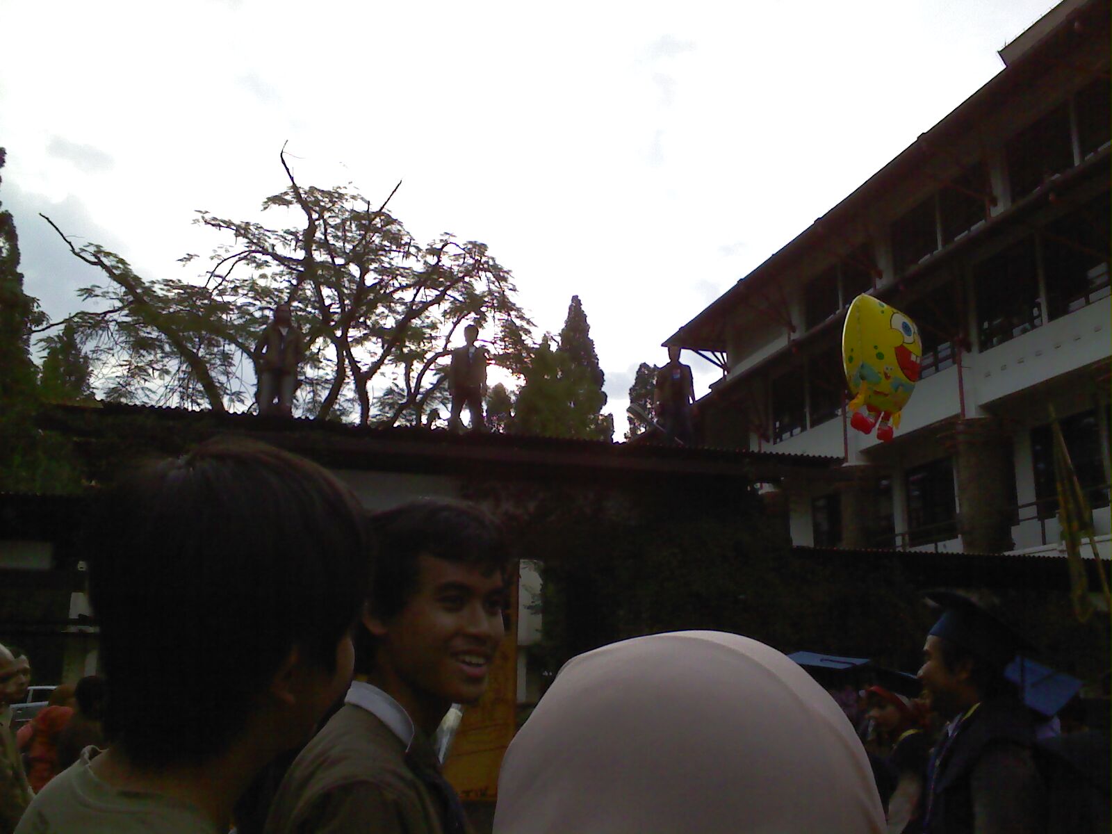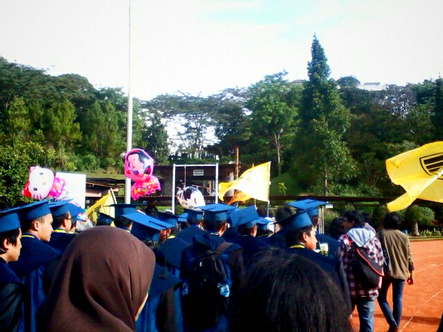 Momen arak-arakan wisudaan seperti ini memang belum pernah kulewatkan. Sejak aku menjadi anggota HMIF, aku selalu mengikuti arak-arakan wisudaan himpunanku. Rasanya senang saja bisa melihat keceriaan wajah para wisudawan dan orang tuanya. Selalu saja ada gairah dan semangat yang meresap dalam diriku agar aku pun bisa seperti mereka, lulus dan membahagiakan orang tua.