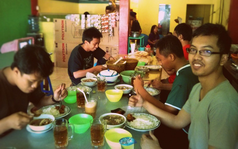 Karena jadwal kedatangan kami berbeda-beda, kejadian saling menunggu tak terelakkan. Singkat cerita, siang menjelang sore kami baru bisa berkumpul di Bandara Abdul Rahman Malang, kemudian mobil bergerak ke Probolinggo. Di sana kami mampir makan siang di restoran Rawon Nguling. Pulang ke Jawa Timur memang kurang lengkap kalau nggak makan rawon:D. Kata sopirnya sih ini rawon yang populer di sana. Ketika sampai di sana, eh beneran lah, ada foto Pak SBY pas lagi di sana, haha. Fotonya gede, dipasang di dinding dalam restoran.