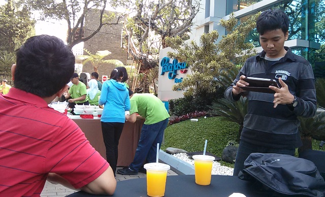 Aku, Pam, dan Wafi sempat mencicipi menu khusus CFD di pelataran Hotel Patra Jasa yang berada di seberang SPBU Petronas lama. Ini kali pertama aku melihat Patra Jasa ikut “berpartisipasi” di CFD. Sebelumnya belum pernah. Menunya cukup murah untuk ukuran hotel. Tapi, porsinya juga tahu sendirilah ya kalau dengan harga 12 ribu dapatnya seberapa, hehe. But like usual, mantra “sekali-sekali nggak apa-apa lah ya…” selalu ampuh untuk menghibur diri, hihi.