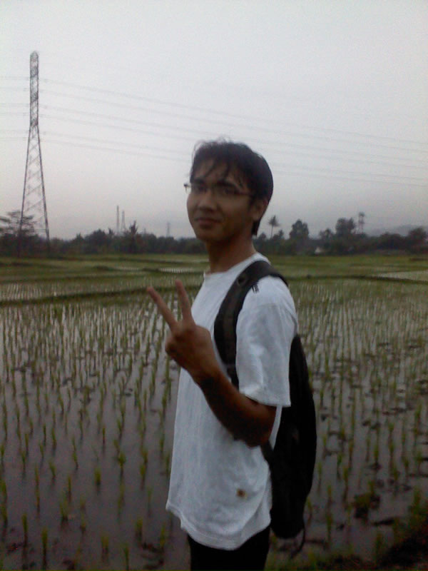 Stasiun Padalarang langsung berhadapan dengan pasar (aku kurang tahu namanya, mungkin Pasar Padalarang). Iseng-iseng jalan menembus pasar itu. Eh, nggak taunya langsung sawah saja. Akhirnya kami jalan-jalan di tengah pematang sawah. Maklum, di Bandung jarang melihat sawah :-P. Jadi teringat kampung halaman di Malang yang dekat persawahan, hehehe. Setelah melihat sawah ini, tiba-tiba jadi terpikir olehku jangan-jangan di dekat sini ada yang jual lalapan belut. Belum pernah aku menemui lalapan belut di tempat-tempat makan di sekitaran Dago. Langsung saja kami hunting tempat makan yang jualan lalapan belut. Setelah berjalan tanpa arah, bahkan sampai Kota Baru Parahyangan, ternyata tidak kami temui. Kami pun memutuskan balik ke stasiun sambil mampir ke tempat makan seadanya.