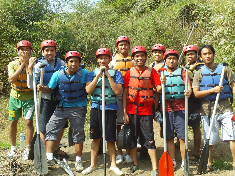 Peserta rafting ini terdiri atas 11 orang anak Elektro ’07, Informatika ’07, dan Sistem Teknologi Informasi ’07, yaitu aku, Luthfi, Kamal, Rizky, Khairul, Luqman, Jiwo, Ian, Haris (IF ’07), Veri (STI ’07), dan Pras (EL ’07). Semua orang tersebut, kecuali Luqman, Ian, Haris, dan Veri, merupakan teman-teman yang ikut tur ke Sukabumi-Ciamis Maret lalu. Dalam rafting kali ini, selain kami, juga ada 12 rekan mahasiswa dari Geodesi ’08 dan tentu saja rekan-rekan dari KMPA yang berjumlah 6 orang. Jadi total ada 29 orang, di mana empat orang di antaranya adalah perempuan (dua orang dari KMPA dan dua orang lagi dari Geodesi.