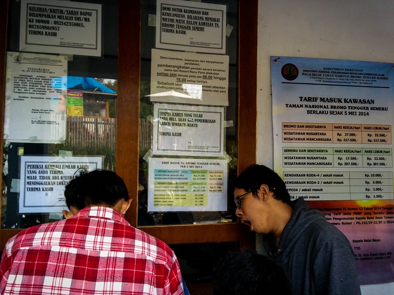 Setibanya di Ranu Pani kami langsung menuju ke Pos Ranu Pani untuk mengurus perizinan. Tak lupa kami menyiapkan persyaratan seperti bukti pembayaran, surat keterangan sehat, dan 1 lembar fotocopy KTP untuk diserahkan. Kami membayar Rp57.500 per orang sebagai tiket masuk (Tarif hari biasa Rp17.500/hari dan hari libur Rp22.500/hari).